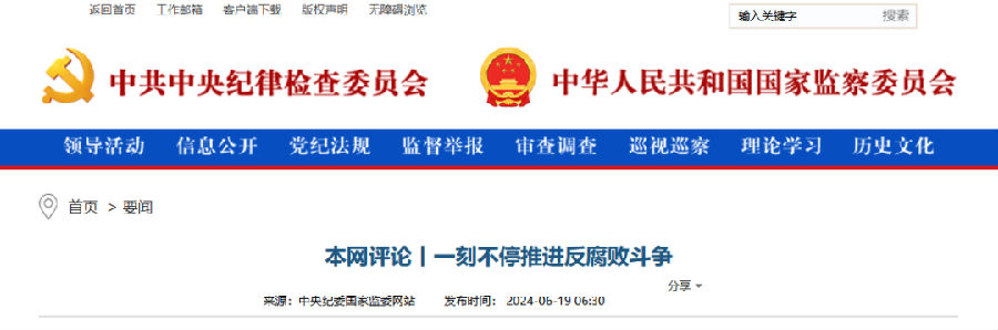 6月19日,中央紀(jì)委國家監(jiān)委網(wǎng)站發(fā)布《本網(wǎng)評論丨一刻不停推進(jìn)反腐敗斗爭》一文指出,堅(jiān)持個(gè)案查處與系統(tǒng)整治相結(jié)合,深化整治金融、國企、能源、煙草、醫(yī)藥、基建工程和招投標(biāo)等權(quán)力集中、資金密集、資源富集領(lǐng)域的腐敗,清理風(fēng)險(xiǎn)隱患。