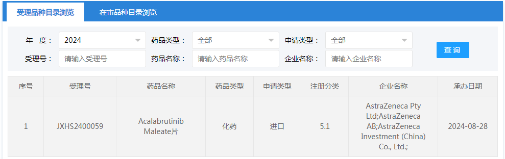 8月28日,CDE官網(wǎng)顯示,阿斯利康申報的Acalabrutinib Maleate片(阿可替尼馬來酸鹽片)上市申請獲受理。阿可替尼膠囊是一款布魯頓氏酪氨酸激酶(BTK)抑制劑,此前已經(jīng)在中國獲批兩項適應(yīng)癥,分別是用于治療既往至少接受過一種治療的成人套細(xì)胞淋巴瘤(MCL)患者,以及單藥適用于既往至少接受過一種治療的成人慢性淋巴細(xì)胞白血病(CLL)/小淋巴細(xì)胞淋巴瘤(SLL)患者。