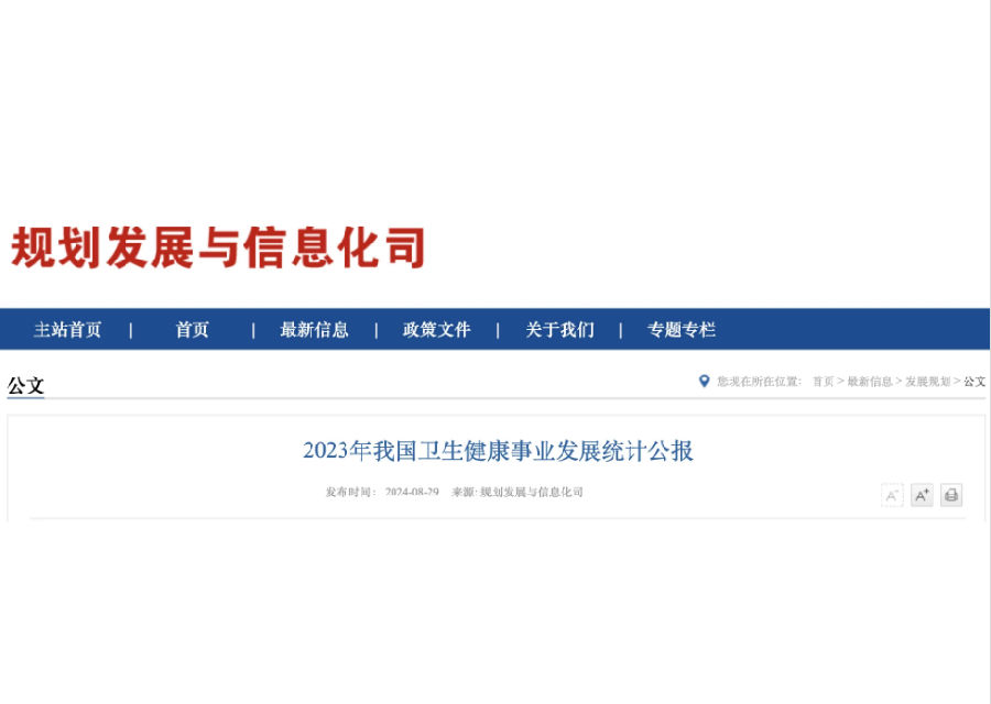 8月29日,國家衛(wèi)生健康委發(fā)布《2023年我國衛(wèi)生健康事業(yè)發(fā)展統(tǒng)計公報》。