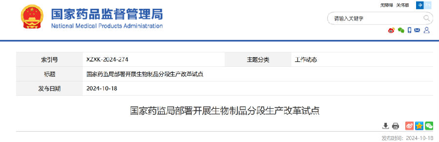 10月18日,國家藥監(jiān)局黨組書記、局長李利主持召開會議,研究部署開展生物制品分段生產(chǎn)改革試點工作,審議通過《生物制品分段生產(chǎn)試點工作方案》。