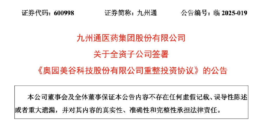 九州通向醫(yī)美領(lǐng)域再邁出一大步。 01 斥資超6億 九州通重整ST美谷 4月23日,九州通發(fā)布公告稱,全資子公司湖北九州產(chǎn)業(yè)園區(qū)運(yùn)營管理有限公司(以下簡稱“九州產(chǎn)投公司”)與奧園美谷及其預(yù)重整期間臨時(shí)管理人簽訂《奧園美谷科技股份有限公司重整投資協(xié)議》,擬出資6.73億元取得重整后奧園美谷3.6億股轉(zhuǎn)增股票。 賽柏藍(lán)查詢發(fā)現(xiàn),奧園美谷目前無實(shí)際控制人,第一大股東深圳奧園科星投資有限公司的持股數(shù)為1.72億股。如果此次重整計(jì)劃順利完成,九州產(chǎn)投公司有望成為ST美谷控股股東。 九州通認(rèn)為,此次重整投資將對其醫(yī)美等業(yè)務(wù)產(chǎn)生積極影響,符合長期戰(zhàn)略發(fā)展規(guī)劃,有利于增強(qiáng)核心競爭力。ST美谷醫(yī)美服務(wù)業(yè)務(wù)與其醫(yī)美業(yè)務(wù)具有良好的協(xié)同效應(yīng)。 作為曾經(jīng)因醫(yī)美概念股價(jià)暴漲6倍的明星企業(yè),ST美谷前身是于1996年上市的湖北金環(huán),早期主要從事化纖行業(yè);而后被京漢控股收購;2020年,奧園集團(tuán)入主并更名為奧園美谷,大步進(jìn)軍醫(yī)美行業(yè)。 為了加快構(gòu)筑醫(yī)美產(chǎn)業(yè)上下游的業(yè)務(wù)優(yōu)勢,奧園美谷通過并購醫(yī)美機(jī)構(gòu)迅速切入這一賽道,包括以6.97億元收購盛妝醫(yī)美持有的浙江連天美企業(yè)管理55%的股權(quán),切入中游醫(yī)美服務(wù)賽道;而后其全資子公司廣州奧美又與暨大醫(yī)藥生物中心、暨源生物等簽署戰(zhàn)略合作協(xié)議,進(jìn)軍醫(yī)美產(chǎn)品端等。 如今,ST美谷旗下?lián)碛泻贾葸B天美醫(yī)療美容醫(yī)院、杭州維多利亞醫(yī)療美容醫(yī)院、廣東奧若拉健康管理咨詢有限公司;其下設(shè)有醫(yī)美事業(yè)部,近年來醫(yī)美業(yè)務(wù)增長迅速,業(yè)務(wù)范圍已覆蓋全國10000余家醫(yī)美服務(wù)機(jī)構(gòu)。 但ST美谷在大力開拓“美麗新事業(yè)”的同時(shí),交出的業(yè)績并不如人意。根據(jù)ST美谷業(yè)績預(yù)告,2024年預(yù)計(jì)虧損3.2億元至4.5億元,歸屬于上市公司股東的凈資產(chǎn)為-1.2億元至-2.4億元。 2025年4月,湖北證監(jiān)局發(fā)布公告,對奧園美谷采取出具警示函的行政監(jiān)管措施。2024年11月18日,奧園美谷的一位債權(quán)人廣州律建財(cái)稅咨詢有限公司向湖北省襄陽中院申請對其進(jìn)行重整及預(yù)重整,理由是其“未能清償?shù)狡趥鶆?wù),且已明顯缺乏清償能力但具有一定的重整價(jià)值”。 ST美谷深陷退市風(fēng)險(xiǎn)與債務(wù)危機(jī)的雙重困境。 不過,奧園美谷重整仍然引起行業(yè)的廣泛參與。在其臨時(shí)管理人下發(fā)出招募重整投資人、公開選聘審計(jì)和評估機(jī)構(gòu)的通知后,截至2025年1月3日,共有45家(以聯(lián)合體形式報(bào)名算作1家)意向投資人提交報(bào)名材料并足額繳納報(bào)名保證金,其中含14家具備產(chǎn)業(yè)相關(guān)背景。 三個(gè)月后,九州產(chǎn)投公司參與ST美谷重整。這一交易頗具誠意,九州產(chǎn)投公司按照產(chǎn)業(yè)投資人的投資價(jià)格受讓奧園美谷本次轉(zhuǎn)增的股票,受讓標(biāo)的股份價(jià)格為1.87元/股。這一價(jià)格相較于ST美谷4月23日收盤價(jià)3.73元/股,基本是打了對折。 02 加碼醫(yī)美賽道 實(shí)現(xiàn)業(yè)務(wù)協(xié)同 在醫(yī)美領(lǐng)域,九州通主要專注于醫(yī)美細(xì)分行業(yè)市場,提供醫(yī)美專屬藥品和耗材“一站式”采購服務(wù)。 醫(yī)美是九州通發(fā)展的重要業(yè)務(wù)之一,2023年醫(yī)美業(yè)務(wù)增長態(tài)勢強(qiáng)勁,實(shí)現(xiàn)銷售收入3.42億元,較上年同期增長103.06%,實(shí)現(xiàn)醫(yī)美業(yè)務(wù)覆蓋5714家醫(yī)美機(jī)構(gòu),線上活躍客戶達(dá)到1864家。2024年上半年,九州通產(chǎn)品戰(zhàn)略發(fā)展事業(yè)部上半年開展了近70個(gè)項(xiàng)目的調(diào)研工作,包括醫(yī)美。 九州通在醫(yī)美領(lǐng)域的發(fā)展,不僅僅是財(cái)務(wù)投資,還有與投資標(biāo)的達(dá)成戰(zhàn)略合作,依托自身優(yōu)勢助力標(biāo)的開拓市場的同時(shí),實(shí)現(xiàn)實(shí)現(xiàn)自身業(yè)務(wù)增長。 這一點(diǎn)早在2016年九州通對愛美客的投資上就得到了驗(yàn)證。2016年9月,九州通出資3082.56萬元參與愛美客增資。通過這筆投資,九州通收益頗豐。2021年上半年九州通超過21億元的凈利潤中,投資收益貢獻(xiàn)過半,其中投資A股醫(yī)美龍頭愛美客產(chǎn)生的計(jì)入當(dāng)期的損益就達(dá)到11.49億元。 不僅如此,九州通下屬企業(yè)九州通醫(yī)療器械集團(tuán)與華熙生物達(dá)成戰(zhàn)略合作,雙方依托九州通在國內(nèi)藥品零售市場雄厚的基礎(chǔ)和健全的網(wǎng)絡(luò)等為華熙生物推進(jìn)“未來醫(yī)美共生聯(lián)盟”市場戰(zhàn)略作出努力。 “顏值經(jīng)濟(jì)”火熱,根據(jù)行業(yè)數(shù)據(jù)分析,我國醫(yī)療美容市場早在2023年已經(jīng)超過2000億元。 回到本次合作,九州通稱,如本次重整成功,其將利用自身強(qiáng)大的醫(yī)藥供應(yīng)鏈體系、高效的運(yùn)營管理經(jīng)驗(yàn)、先進(jìn)的數(shù)字化能力等優(yōu)勢,深入開展與奧園美谷在美麗健康領(lǐng)域的合作,包括但不限