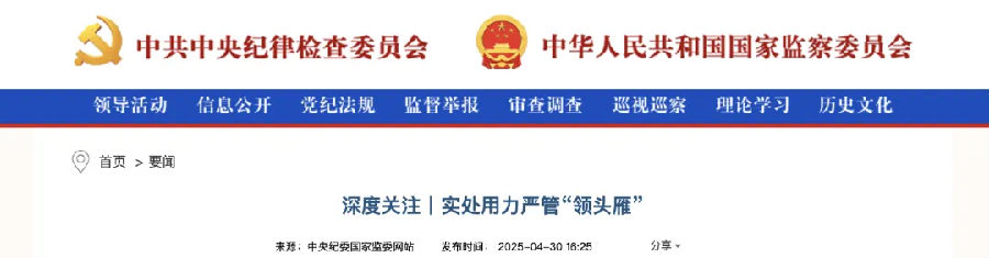 4月30日,中紀委在《深度關注丨實處用力嚴管“領頭雁”》中以廣東省廣州市紀委監(jiān)委的實踐為經(jīng)驗強調(diào)對“一把手”的監(jiān)管。