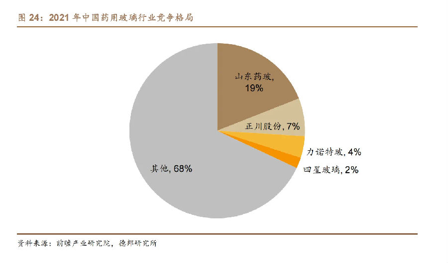目前我國各類藥用包材生產(chǎn)企業(yè)逾千家,其中藥用玻璃生產(chǎn)企業(yè)眾多,包括山東藥玻、格雷斯海姆、肖特公司、正川股份、力諾藥包、滄州四星等在內(nèi)的大型生產(chǎn)企業(yè)占據(jù)了主要的市場份額。