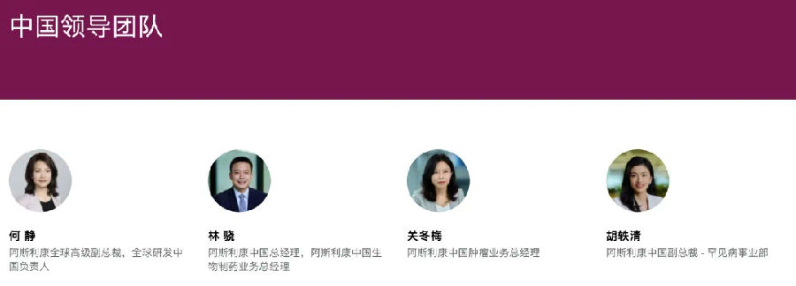阿斯利康中國(guó)領(lǐng)導(dǎo)團(tuán)隊(duì)如下