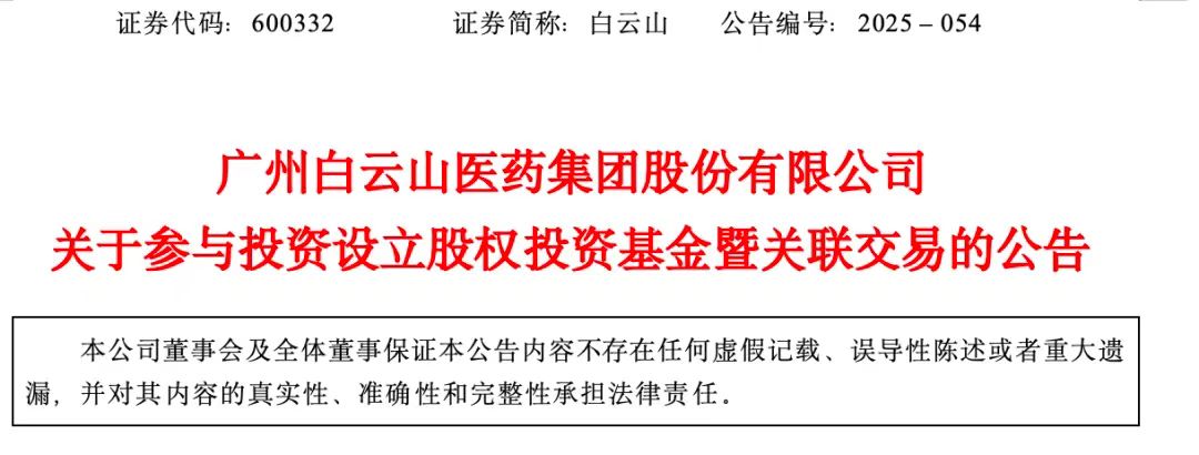 醫(yī)藥投融資熱潮再起!繼“華潤系”參投基金押注生物藥后,廣州白云山擬出資14.985億元入局。 01 認(rèn)繳14.985億 廣州白云山布局生物醫(yī)藥 7月25日,廣藥旗下上市公司廣州白云山醫(yī)藥集團(tuán)股份有限公司(以下簡稱“白云山”)發(fā)布公告稱, 擬作為有限合伙人以自有資金出資14.985億元參與設(shè)立廣州廣藥基金二期股權(quán)投資合伙企業(yè)(有限合伙)(擬定名,具體以企業(yè)登記機(jī)構(gòu)核準(zhǔn)的名稱為準(zhǔn))。 本次白云山擬出資金額占廣藥基金二期認(rèn)繳出資總額99.90%,剩余0.015億元由廣州廣藥資本私募基金管理有限公司(以下簡稱“廣藥資本”)認(rèn)繳,占比0.10%。基金總認(rèn)繳出資額為15.00億元,全部為貨幣出資。 廣藥資本是廣藥集團(tuán)持股80%的控股子公司,也是廣藥基金二期管理人。白云山副董事長程寧擔(dān)任廣藥資本董事長,因此白云山這次認(rèn)購廣藥基金二期份額構(gòu)成關(guān)聯(lián)交易。 基金將通過直接或間接的方式用于開展生物醫(yī)藥領(lǐng)域的股權(quán)投資。主要圍繞白云山的戰(zhàn)略規(guī)劃,通過子基金投資、項目直接投資等方式投向醫(yī)藥、醫(yī)療器械、醫(yī)療服務(wù)等生物醫(yī)藥與健康領(lǐng)域。 傳統(tǒng)業(yè)務(wù)承壓下,這家擁有13家中華老字號、長期以大南藥為核心利潤支柱的醫(yī)藥巨頭將目光投向了具有增長潛力的生物醫(yī)藥賽道,并開始著力提升資本運營能力。 2024年,白云山營收穩(wěn)健但利潤承壓——2024年營收749.92億元,與2023年相比波動不大;不過,利潤僅有36.07億元,同比減少29.41%;歸母凈利潤28.35億元,同比減少30.09%。 業(yè)績下滑主要受多重原因沖擊,如有效需求不足、行業(yè)加速變革、行業(yè)政策變化、市場競爭激烈等。2025年白云山在資本運營方面規(guī)劃了三大方向: 一是,進(jìn)一步加強(qiáng)市值管理工作與制度化建設(shè),加強(qiáng) ESG 管理體系建設(shè)與完善,努力提高投資者回報,提升公司境內(nèi)外的資本市場形象; 二是,積極構(gòu)建“產(chǎn)業(yè)+科技+金融 ”完整鏈條,以產(chǎn)業(yè)基金加快對創(chuàng)新項目投資,實現(xiàn)對生物醫(yī)藥領(lǐng)先賽道、優(yōu)勢細(xì)分領(lǐng)域的前瞻性布局,分類推動各業(yè)務(wù)投資并購工作; 三是,加快推進(jìn)醫(yī)藥公司新三板掛牌并擇機(jī)到北京證券交易所上市工作。 02