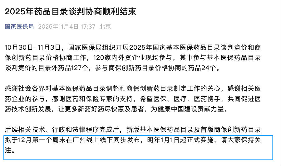 11月3日,2025年國家醫(yī)保目錄現(xiàn)場談判與商保創(chuàng)新藥目錄價格協(xié)商正式迎來收官日。