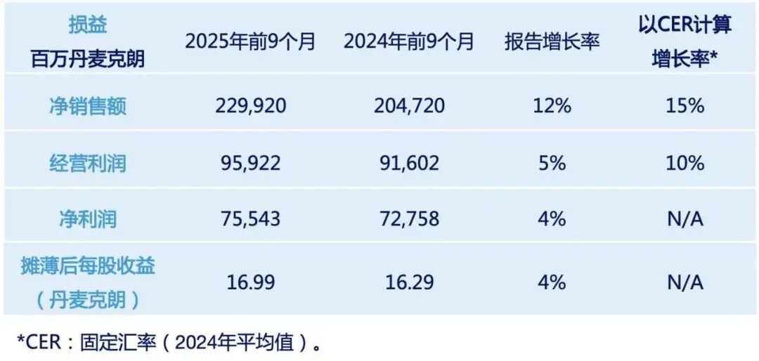 目前,諾和諾德已經(jīng)對2025年做出展望,預(yù)計(jì)銷售增長率以CER計(jì)算為8-11%;經(jīng)營利潤增長率以CER計(jì)算為4-7%,其中全公司范圍轉(zhuǎn)型預(yù)計(jì)會(huì)為全年帶來約80億丹麥克朗的負(fù)面影響。以丹麥克朗計(jì)算的銷售和經(jīng)營利潤增長將比以CER計(jì)算的增長率分別低4個(gè)和6個(gè)百分點(diǎn)。