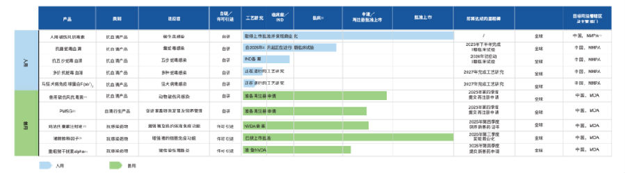 此外,其利用低風險、高效率的技術復用能力,形成了人用藥和獸用藥的協(xié)同產(chǎn)品組合,獸用管線包括獸用破傷風抗毒素、孕馬血清促性腺激素(「PMSG」),以及若干用于補充或支持PMSG治療的激素類藥物;還引進了三款新獸藥(獸用抗感染藥物)管線的生產(chǎn)及商業(yè)化的權限,進一步豐富產(chǎn)品布局。這雙飛輪模式下的產(chǎn)品管線面對的均是有明確市場缺口、且體量持續(xù)增長的市場。