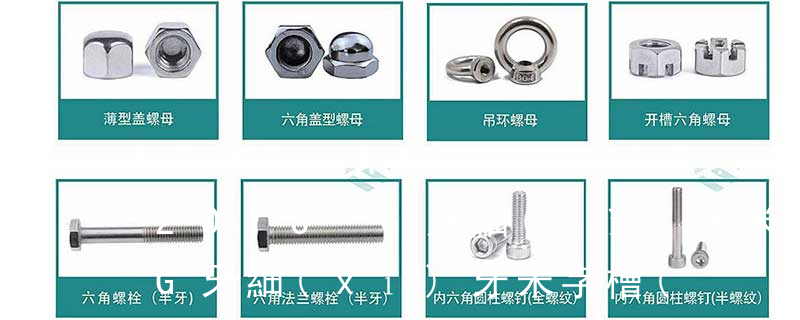 機(jī)螺釘、自攻螺釘、鉆尾螺釘、墻板釘、纖維板釘、木螺釘、六角木螺釘、不脫出螺釘、組合螺釘、微型螺釘、家具螺釘、電子螺釘 2.按照頭型可分為 1)六角頭(hexagon head)2)六角頭法蘭面(hexagon head with flange)3)方頭